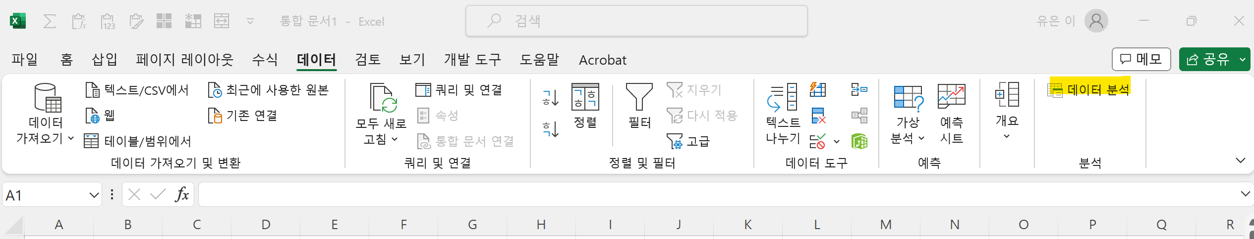 데이터 분석 도구는 기본적으로 엑셀에 활성화 되어있는 기능이 아닙니다.